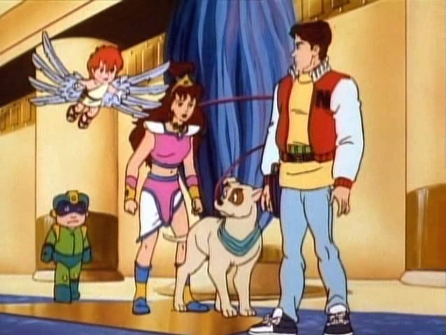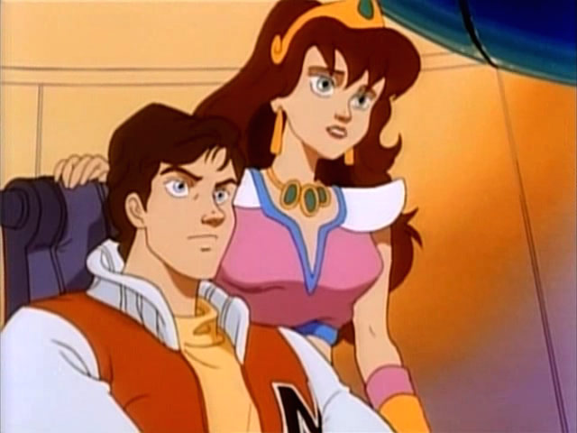 In Videoland, Kevin found himself equipped with a Zapper (electronic gaming gun) and a Nintendo-styled control pad (attached where his belt buckle would be) that he could use to execute video game type abilities (such as pausing the action or executing an unnaturally high jump) as long as the power of the controller didn’t run down, which it sometimes did. He quickly teamed up with a new group of friends who called him Captain N (recognizing him as the one the prophecy foretold). Princess Lana ruled Videoland in place of her father who had been banished to the Mirror. In her service was the short but powerful robot Mega Man (from his own self-titled game), the handsome but vain Simon Belmont (from Castlevania), and the arrow shooting, cherub-like Kid Icarus (also from a self-titled game). At the beginning of the second season the group was joined by Game Boy, a human-sized supercomputer shaped like the Nintendo product of the same name.
