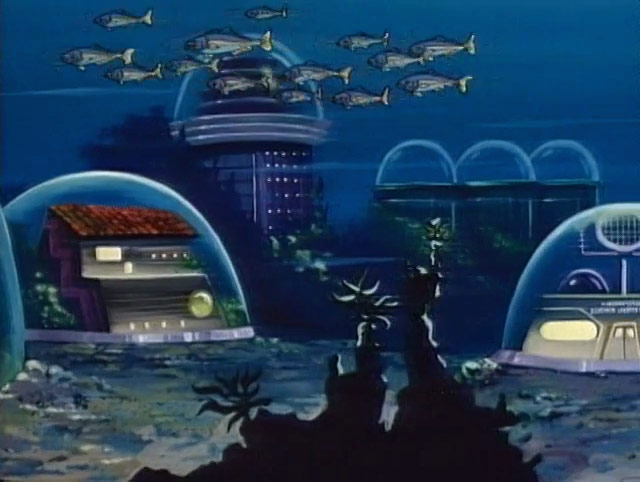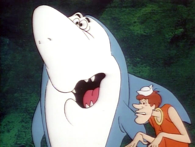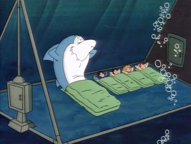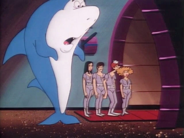 The series included things one might expect to find in an underwater world. For starters, the names of most things began with “aqua,” like aquamobile, Plaza Aquapulco and Aquamo (Eskimo). Sharks must have been a common problem, because “shark ejectors” (robots programmed to remove a shark from the premises) were standard in many establishments. Apparently not all sharks were of the friendly sort like Jabberjaw, who was repeatedly tossed out by the shark ejectors, prompting his inevitable complaint of, “No respect!”