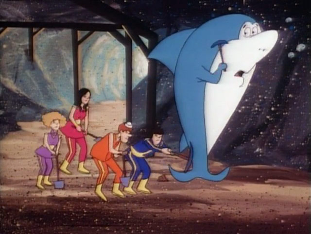 Level-headed Biff played lead guitar and led the band. Ditzy, blond-haired Bubbles played keyboard and had a knack for making a bad situation even worse by doing stupid things. Clamhead played bass. In dangerous circumstances, or when he got excited about something, his favorite phrase was, “Wowee, Wow Wow.” Raven haired tambourine player Shelly was vain and easily annoyed; most especially so with the band’s drummer Jabberjaw. She was full of not-so endearing terms for the shark, like Blubberhead, Dum-Dum, Jabbernose, overgrown guppy and Jabber-blubber, to name a few. It’s small wonder that Jabberjaw complained of getting “No respect!”
