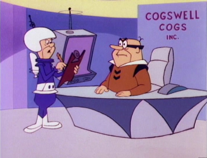 The family lived in SkyPad Apartments, in an era when flying vehicles are the norm and most things are automated. Despite these advantages, the family members had the same problems and motivations as mankind in the modern age. Jane loved to shop and dreaded housework, Judy fell in love with one boy after another, and Elroy liked gadgets and comics. Father and husband George Jetson tried to get ahead at his workplace, Spacely Space Sprockets, but lived in constant fear of being fired by his diminutive, hard-nosed boss Cosmo Spacely.